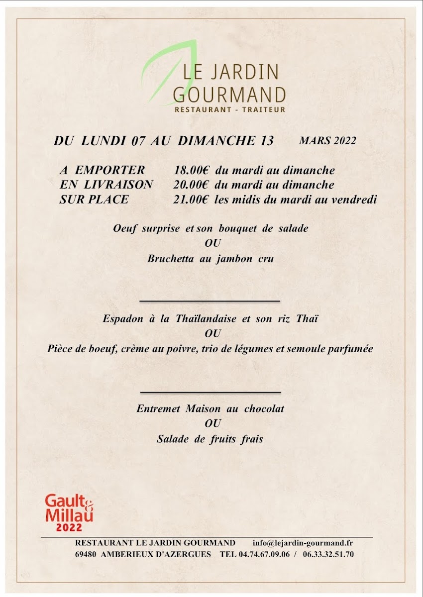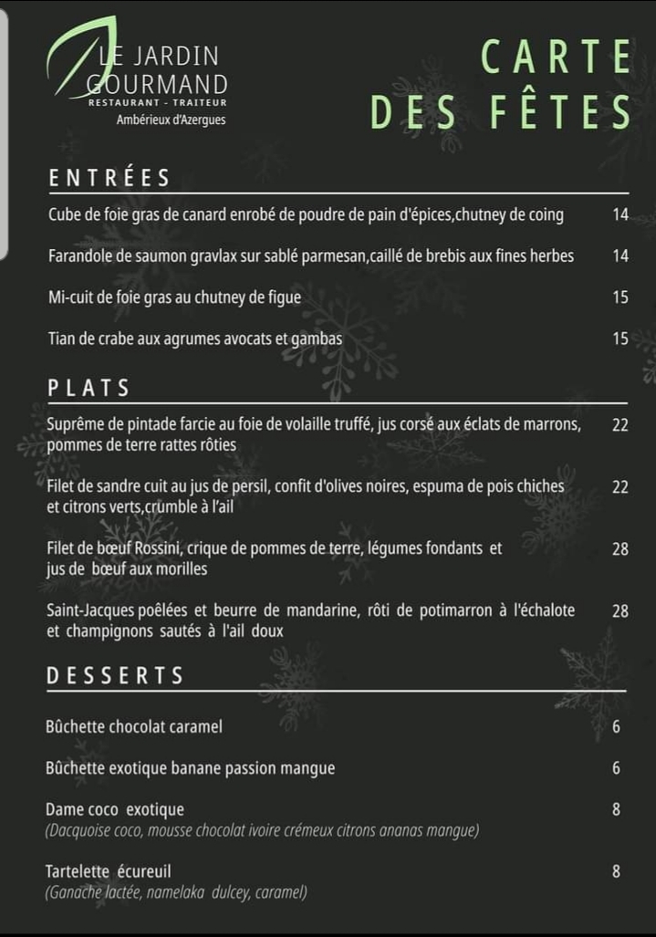 Welcome to Restaurant Le Jardin Gourmand (La Vie est Delicieuse), a culinary oasis nestled in Amberieux, France. Our menu is a celebration of exquisite French gourmet cuisine, offering a delightful array of dishes that tantalize the senses.